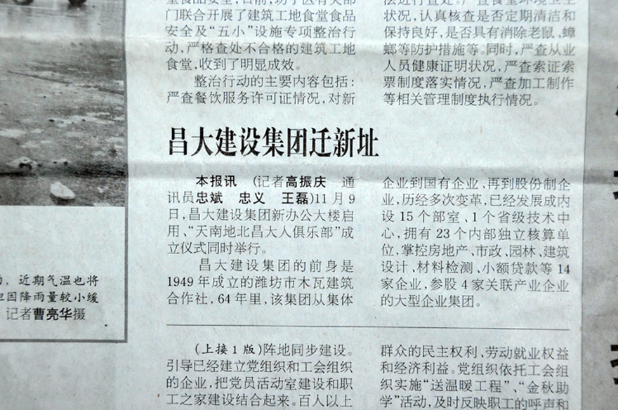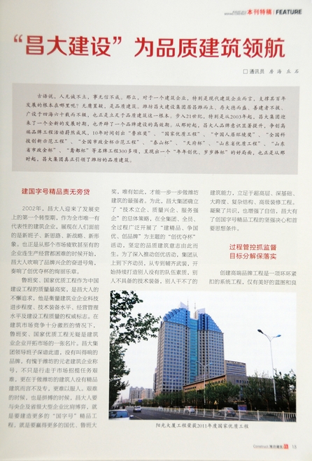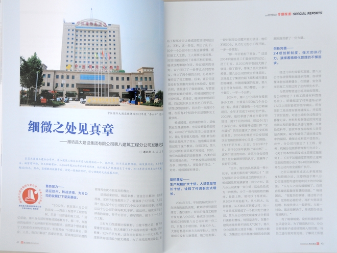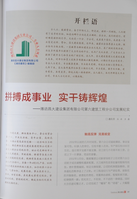 以下為《濰坊建筑》刊登昌大建設專業公司、專業人士系列報道: