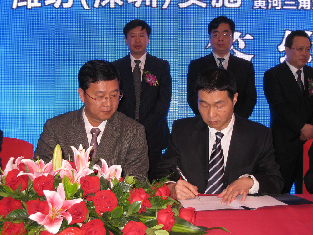2012年4月6日,濰坊(深圳)實施山東半島藍色經濟區、黃河三角洲高效生態經濟區戰略合作懇談會在深圳召開,濰坊市委書記許立全等市領導出席了會議,集團公司董事長、黨委書記徐鵬強應邀參加懇談會并參加重點項目簽約活動。
