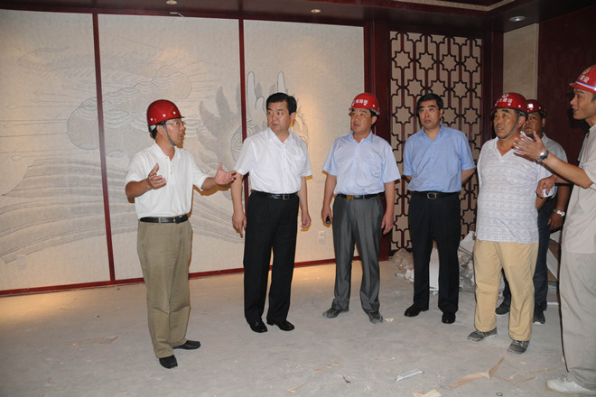 許立全在會議中心西側下車,查看了展覽中心和會議中心外裝情況、廣場和園林綠化情況,隨后登上會議中心二層察看了內裝并重點察看了千人宴會廳的內裝情況,對會展中心的接待能力進行了了解。許立全聽取了市建設局副局長張文在現場關于工程建設基本情況的匯報,對工程建設情況表示了滿意。