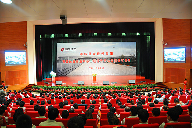 2012年9月29日,秋風送爽,丹桂飄香。在這個金秋收獲的日子里,濰坊昌大建設集團會展中心工程建設總結表彰頒獎盛典在魯臺經(jīng)貿(mào)會展中心的會議中心報告廳隆重舉行。濰坊昌大建設集團全體高管層領導徐鵬強、朱九洲、滕忠斌、李坤明、姜建魯、穆乃杰、張連悅、張學智、閆鵬、劉雁冰,會展中心工程各參建單位全體參建人員、管理骨干,各分、子公司領導班子成員、管理骨干,集團總部全體人員,集團駐會展中心工程建設現(xiàn)場指揮部以及應邀參會的安順片區(qū)指揮部、工程設計、監(jiān)理、咨詢等有關單位負責人共581人參加了頒獎盛典。應集團的邀請,濰坊市人民政府副市長夏芳晨出席頒獎活動并作重要講話,市政府副秘書長于為凱,市建設局局長李廣東、副局長張文等出席上述活動。
