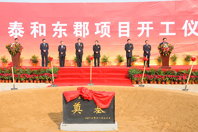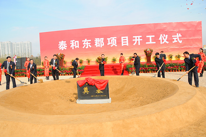 2012年11月20日上午,由集團泰和公司開發的“泰和東郡”項目舉行了隆重的開工奠基儀式。集團高管層領導徐鵬強、李坤明、姜建魯、穆乃杰、張連悅、閆鵬、劉雁冰出席開工奠基儀式。出席開工奠基儀式并在主席臺就位的領導和嘉賓有濰坊市委常委、高新區黨工委書記、管委會主任趙志遠,高新區黨工委副書記、管委會副主任陳甲才,高新區黨工委委員、管委會副主任兼經發局局長曲志剛,高新區黨工委委員、黨政辦公室主任唐偉,集團董事長徐鵬強,山東海王銀河醫藥公司董事長孔憲俊,集團副總經理兼泰和公司總經理姜建魯。集團全體中層以上人員、第四分公司部分管理人員參加了開工奠基儀式。開工奠基儀式由高新區黨工委委員、管委會副主任譚建民主持。