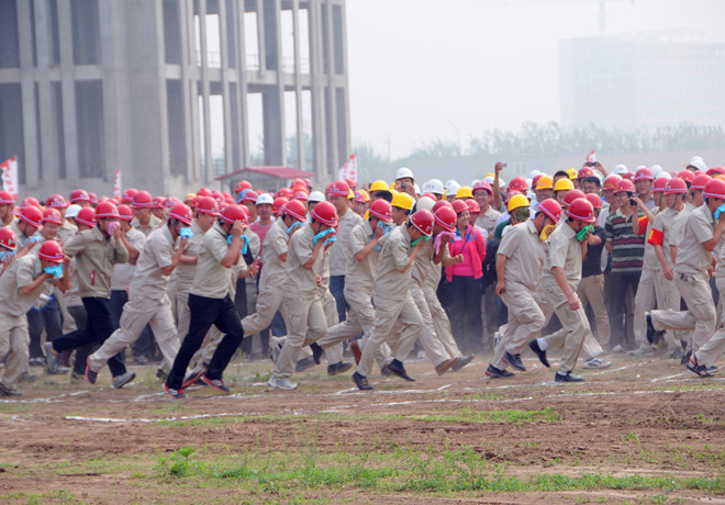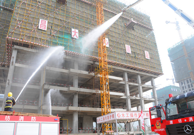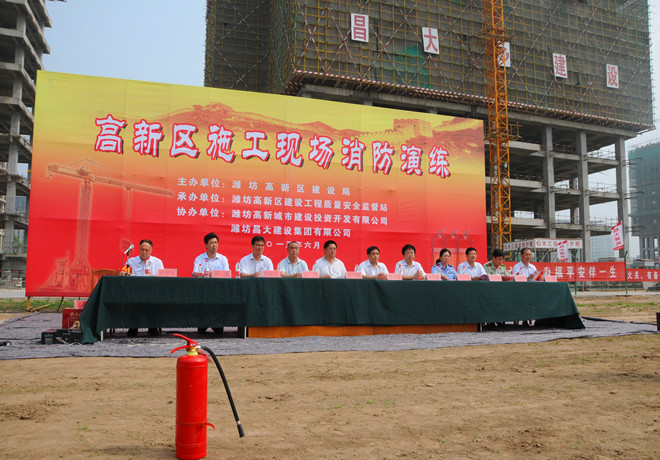 為切實推進施工現場消防安全管理,提高全員消防應變能力,以實際行動開展好“六月安全月”活動,2013年6月5日上午,集團公司在高新區中央商務區施工現場組織了大型消防演練活動。來自各基層單位分管生產的經理、工程管理人員,施工現場專職安全員,演練現場三個分公司的全體管理人員和勞務專業隊伍,高新區工程建設、總承包、監理單位以及勞務分包單位代表等近1000人參加了演練活動。
