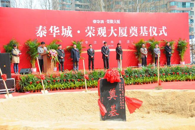 2013年4月6日上午,集團(tuán)總經(jīng)理朱九洲出席了由集團(tuán)第二分公司承建的泰華城•榮觀大廈工程奠基儀式并發(fā)表講話。集團(tuán)副總經(jīng)理穆乃杰參加上述活動(dòng)。參加儀式的還有泰華集團(tuán)以及設(shè)計(jì)監(jiān)理等方面的有關(guān)負(fù)責(zé)人。第二分公司部分領(lǐng)導(dǎo)和管理骨干參加了奠基活動(dòng)。
