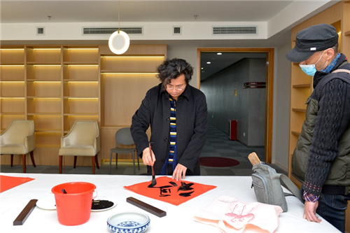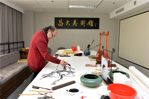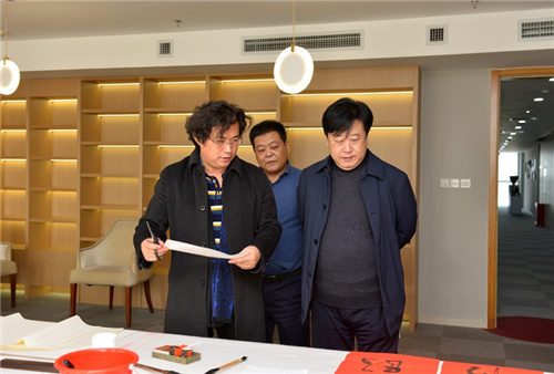 王居明一行對昌大美術館的藝術設計給予高度評價,在現場創作“福”字、山水畫、花鳥畫、人物畫和書法等作品氣韻渾然天成,妙趣匠心獨具。豐富了昌大美術館館藏,對昌大集團文化建設具有積極影響。