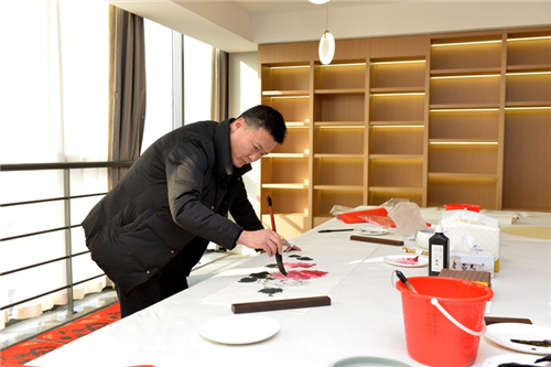 2021年2月7日上午,濰坊市美術家協會送“福”進昌大活動暨昌大美術館開館儀式在集團辦公樓26樓昌大美術館舉行。山東省美協副主席、濰坊市美協主席王居明率濰坊市美術家協會畫家一行來到昌大美術館參觀交流,潑墨筆會,寓意福運昌大!集團董事長徐鵬強、總裁朱九洲、工會主席穆乃杰、副總裁吳杰參加活動,并對藝術家們送“福”進昌大活動表示熱烈歡迎和誠摯感謝。