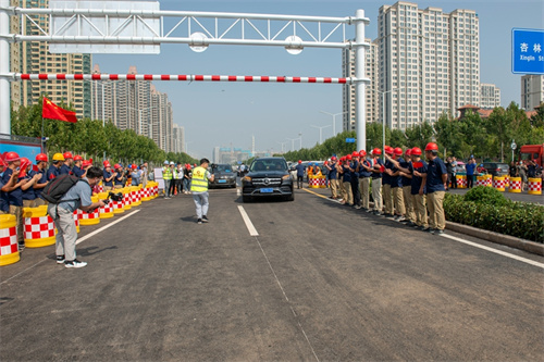 上午11:08,市寶通街快速路工程建設指揮部辦公室常務副主任田太卿及市指揮部有關成員,工程總監李維漢及其團隊,昌大集團黨委副書記、總裁、寶通街工程總指揮朱九洲在現場出席了簡約而隆重的通車儀式并乘車通過下穿通道。昌大集團總工程師、寶通街快速路工程現場總指揮房海宣布通車,昌大集團質量技術部、四建公司、八建公司、安裝公司、裝飾幕墻公司、園林公司等各單位有關負責人和施工人員代表見證了通車盛典時刻。隨著社會車輛緩緩放行,濰坊中心城區首個“三位一體”的立體交通式路口的地下部分正式投入運行。此項保障民生之舉,昌大集團兌現了承諾,贏得市民廣泛贊譽。