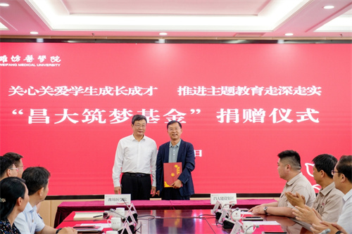 2023年5月18日下午,濰坊昌大建設集團捐贈濰坊醫學院“昌大筑夢基金”捐贈儀式在濰坊醫學院行政樓隆重舉行。