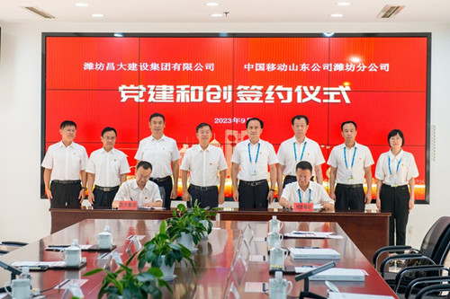 2023年9月13日下午,濰坊昌大建設集團與中國移動山東公司濰坊分公司“黨建和創(chuàng)”戰(zhàn)略合作協(xié)議簽約儀式在濰坊移動總部辦公樓舉行。集團公司黨委書記、董事長徐鵬強,濰坊移動黨委書記、總經理李亞平出席簽約儀式。集團公司紀委書記穆乃杰與濰坊移動黨委委員、工會主席、副總經理李廣代表雙方在協(xié)議書上簽字。