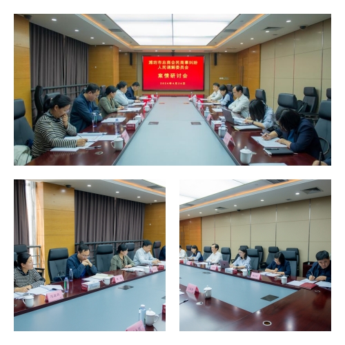 2024年4月26日上午,濰坊市總商會民商事糾紛人民調解委員會案情研究會在集團二樓視頻會議室召開,集團總裁朱九洲作為調解委員會副主任出席會議。出席會議的領導和專家還有濰坊市工商聯黨組成員、副主席、調解委員會主任譚述霞、濰坊市中級人民法院民一庭副庭長馮海玲、濰坊市中級人民法院立案一庭二級法官柴象坤、濰坊市中級人民法院研究室主任周偉、山東豪德律師事務所主任付興剛、山東豪德律師事務所合伙人、訴訟中心主任王曉倩、濰坊市稅務局一級行政執(zhí)法員鄭春偉、濰坊市自然資源和規(guī)劃局開發(fā)利用科一級主任科員劉永紅、濰坊市工商聯經濟咨詢科副科長齊鳳濤。