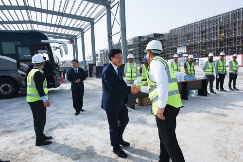 在卡塔爾,徐鵬強董事長隨代表團一行拜會了卡塔爾公共工程署代理主席優素福 ·埃瑪蒂,卡塔爾工商會董事兼服務委員會主席 阿里 ·阿卜杜拉蒂夫,卡塔爾王室成員、卡塔爾金融中心管理局 金融服務總監謝赫 ·法哈德,卡塔爾王室成員、雷塔基集團主席 謝赫 ·納伊夫,卡塔爾王室成員、JMJ 集團董事長謝赫 ·扎伯,卡塔爾薩拉姆集團總裁阿布杜姆 ·薩拉姆,卡塔爾扎思特房地產集團主席納瑟爾 ·阿爾安薩里等政商界高層,就推進濰坊昌大建設集團等建筑企業開拓卡塔爾建筑業市場,加強兩地間農業、金 融、投資、經貿等領域的合作進行深入交流。在卡期間,徐鵬強董事長陪同代表團考察了集團海外公司總承包施工的薩拉姆物流園項目,并在海外公司座談交流。此外,徐鵬強董事長還參加了中國(濰坊)—卡塔爾經貿合作交流會,在劉運書記親自推動并見證以及黨政有關部門大力支持下,昌大集團與卡塔爾阿爾拜達集團、JMJ 集團、雷塔基集團和薩拉姆集團等簽署了合作協議。